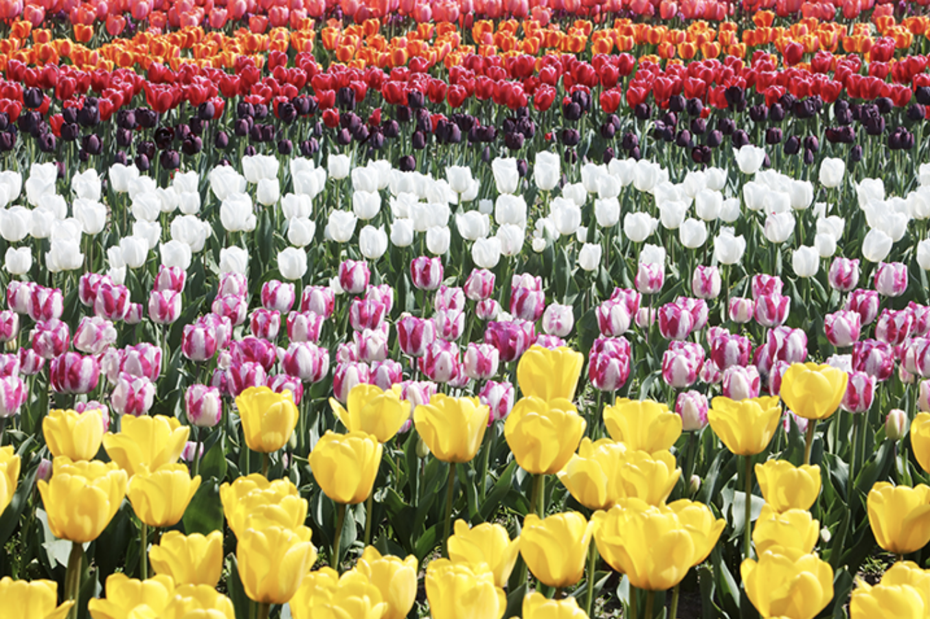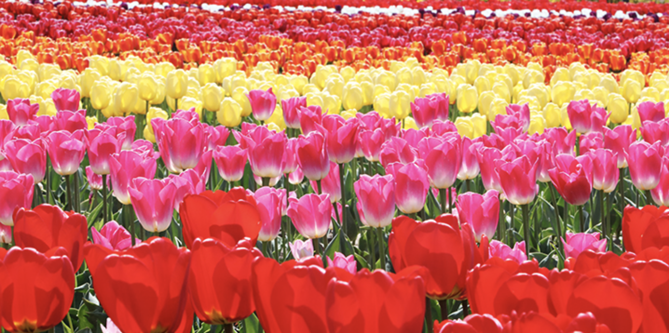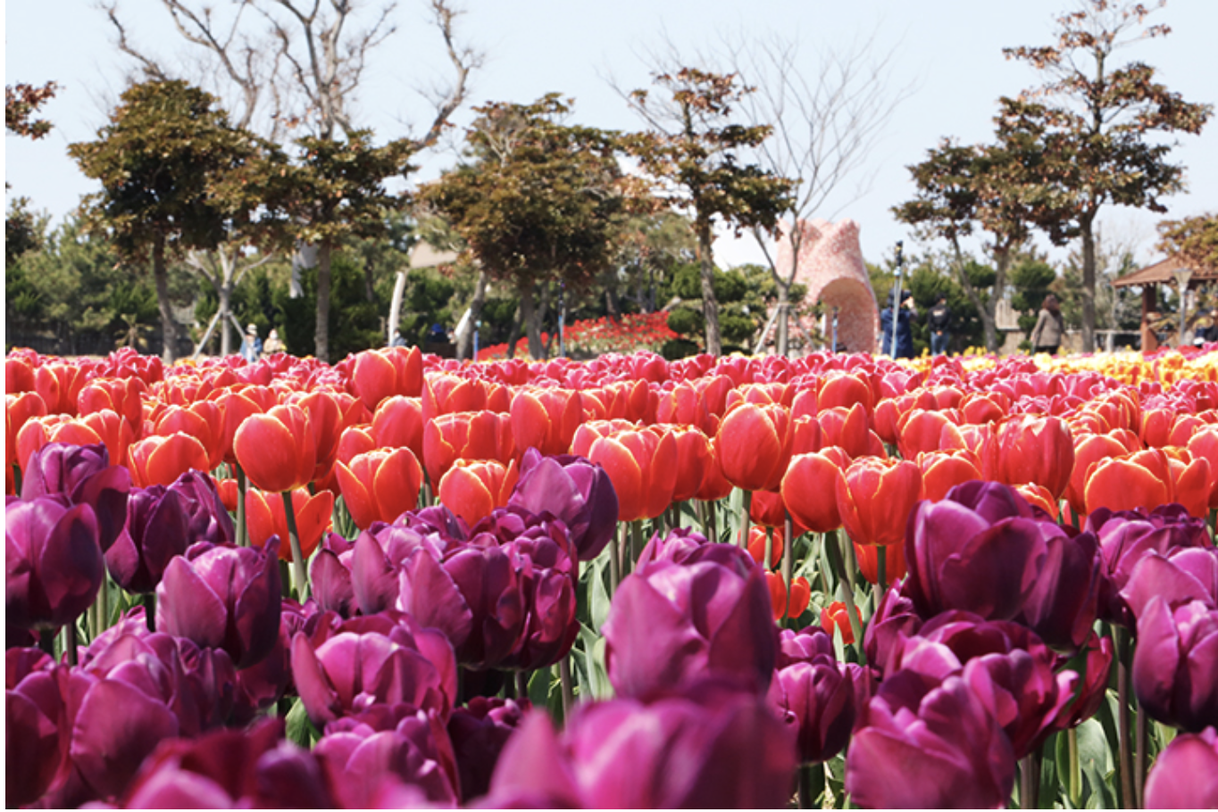 푸른 바다를 배경으로 펼쳐지는 형형색색의 튤립 물결은 마치 동화 속 한 장면처럼 아름답습니다.